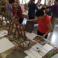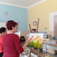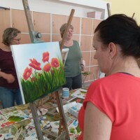 Sešlo se nás celkem 15 žen J. Rozdělily jsme se na dvě skupiny. Pan Michalica měl pro nás připravené 2 obrázky – vlčí máky a vrbu. Pod jeho skvělým vedením naše kreativita neznala mezí. Všechny jsme si odnesly domů naše povedená díla. Bylo to bezva a velmi rády si tuto akci zase někdy zopakujeme.