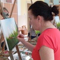 Čeká Vás opravdový zážitek. Je až neuvěřitelné, jak i úplnému laikovi pod vedením profesionála vzniká obloha s mráčky, koruna stromu nebo odraz keřů ve vodní hladině a tak dále.