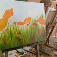 Jedná se o 3,5 – 4 hodinový kurz se složitějšími motivy a malovali by jsme na plátno na desce o rozměru 40*30.